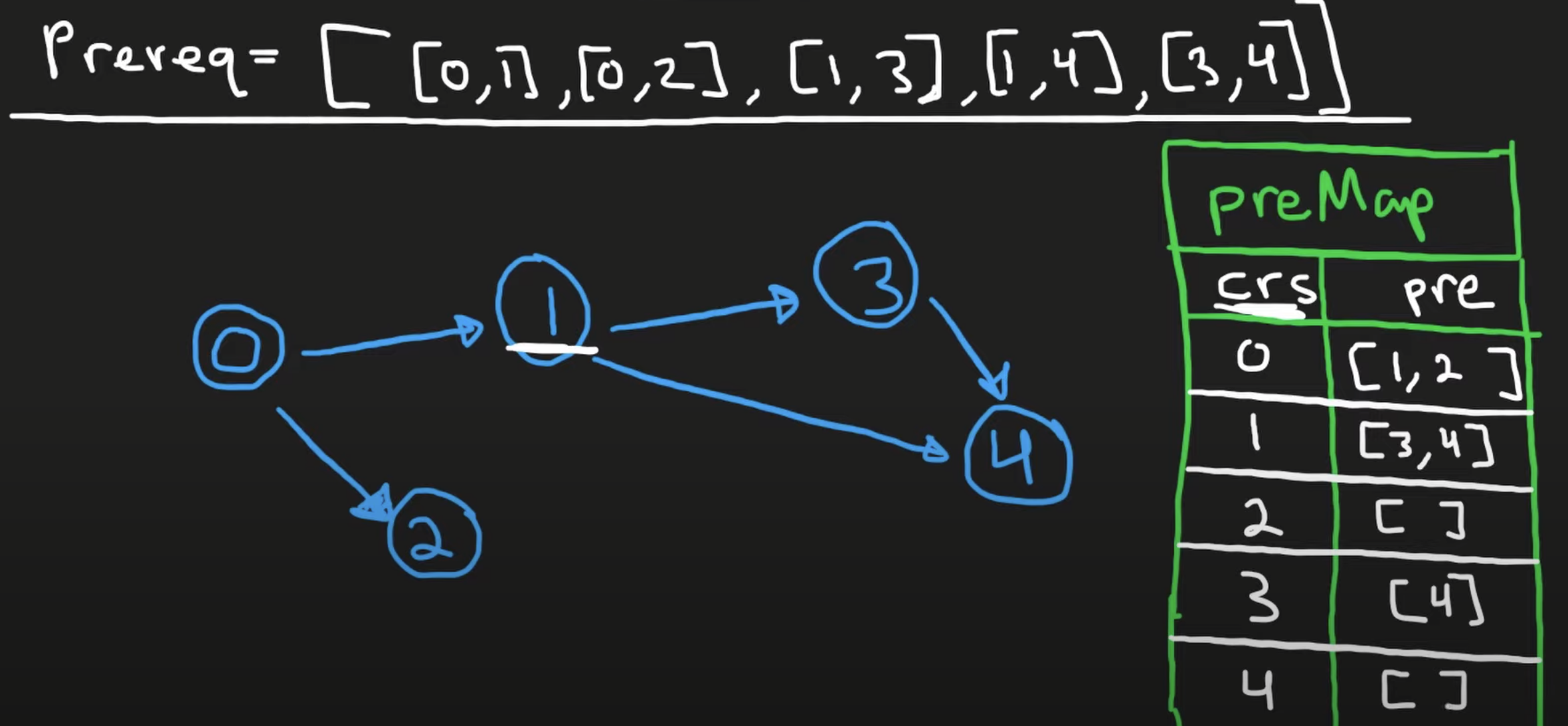 pre_req = {i : [] for i in range(numCourses)} # {course: [prereq]}