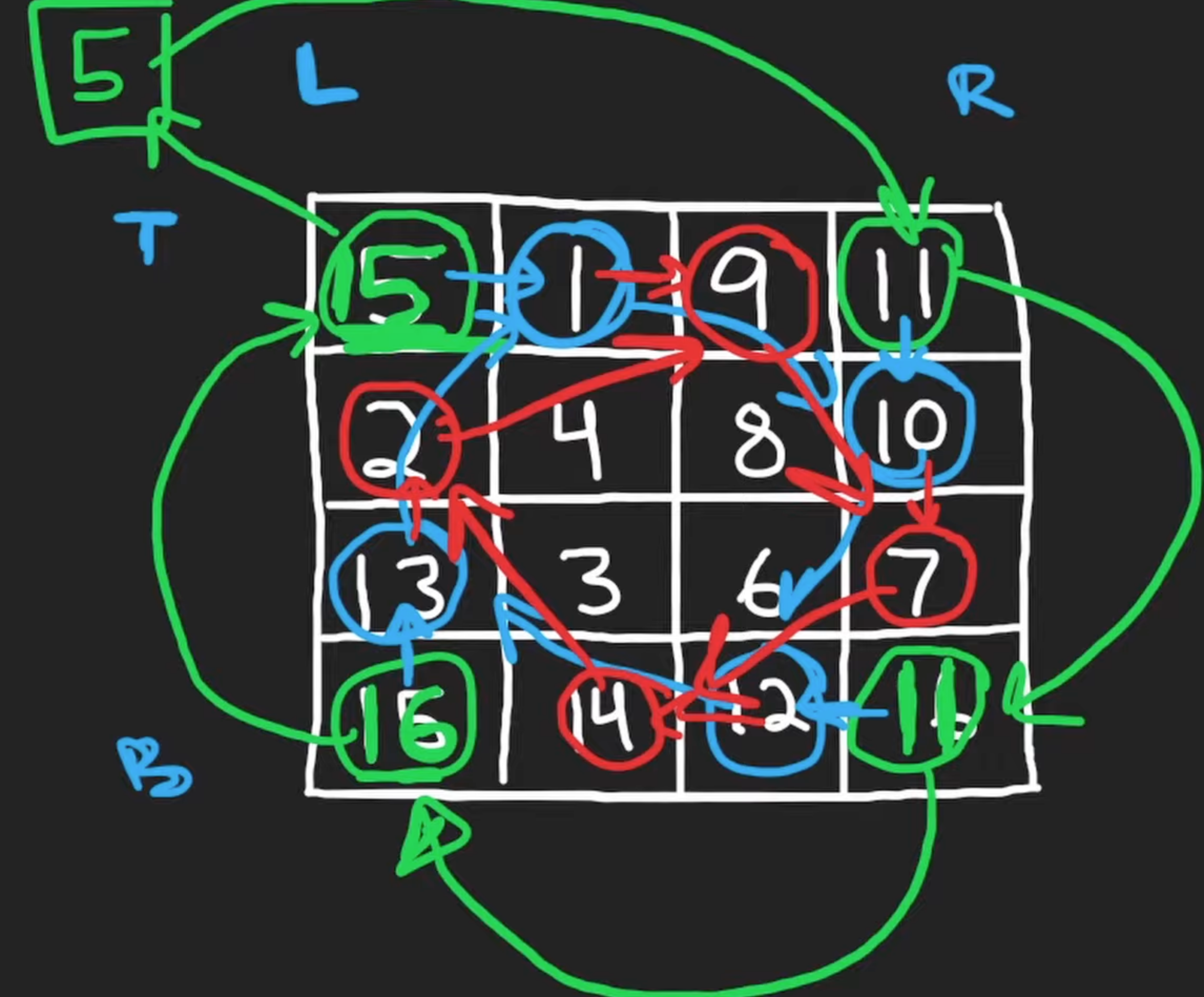 matrix[bottom - i][l] = matrix[bottom][r - i]
